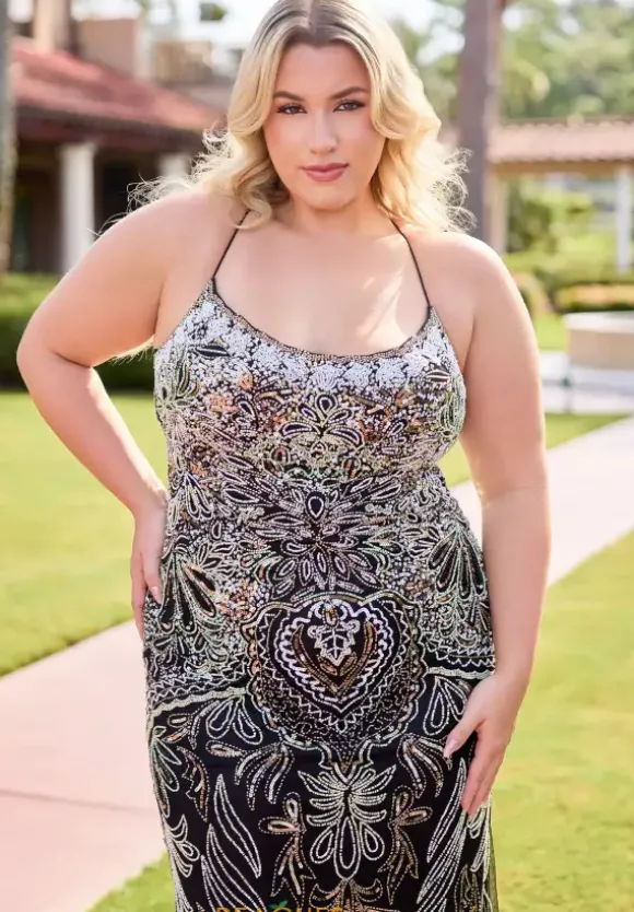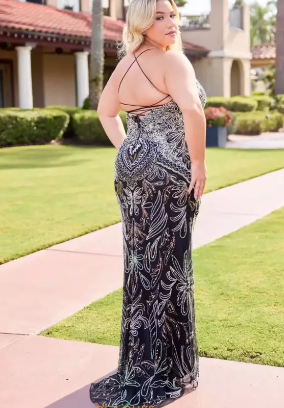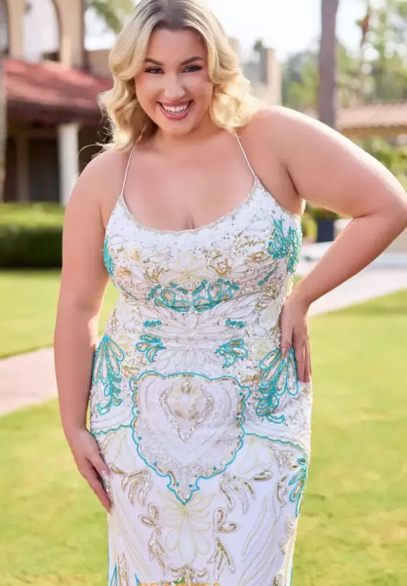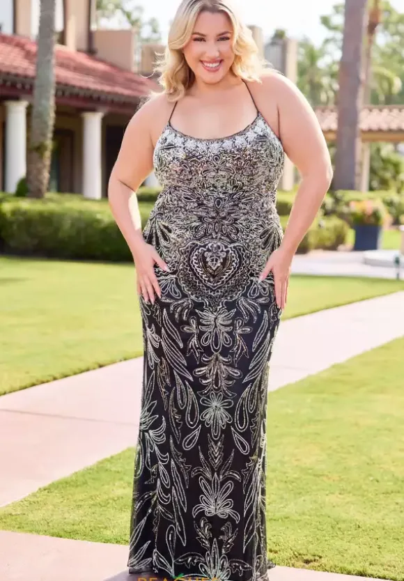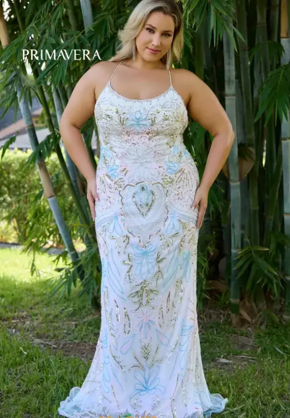Stop the show as you wear the fascinating long style 14074 by Primavera. The lovely scoop neckline is scalloped along the neckline and interchanges to a unique sequin pattern to have you standing out in all your photos to come. Showcasing the fit and flare silhouette to hug and shape the body effortlessly.