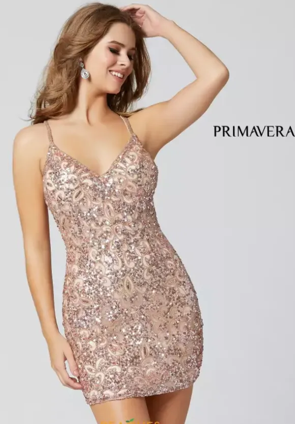 Exquisite Primavera short dress 3353 will sparkle unbelievably at your special occasion. The combination of hand sewn beads and sequins give this exclusive Just Peachy short dress the perfect amount of sparkle that will glisten from all angles. Complete this look with long earrings and high heels.