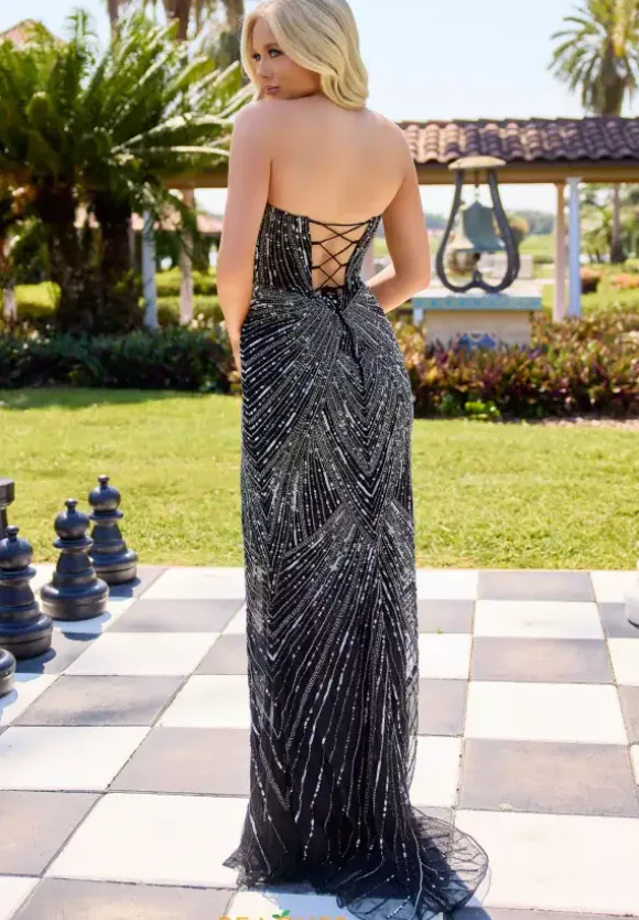 Leave the crowd speechless when they see you wearing this magnificent long fitted dress made by Primavera style 4526. This gorgeous scoop strapless neckline will have you owning the room. The corset will capture your figure beautifully and the lace back will show off your sexy back. Fully detailed in both dazzling beadwork and sparkling sequins patterns.