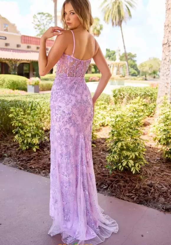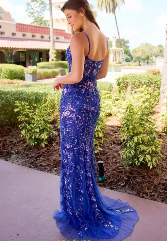 Stop the show wearing long style 4549 by Primavera to your upcoming event. The illusion bodice is beautifully adorned with glistening yet intricate beadwork that cascades down the lovely figure flattering fitted skirt detailed with a thigh high slit and delicate train to follow every where effortlessly.
