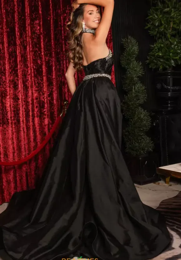 Strike a pose in this astonishing Rachel Allan Pageant style 50369. Amp up the drama in this fully beaded pageant dress that features a v neckline and slim fitted silhouette. The flattering corset bodice highlights an alluring keyhole cutout adorn in bright contrasting stones. A taffeta removable overlay skirt and high slit adds an exquisite finishing look.