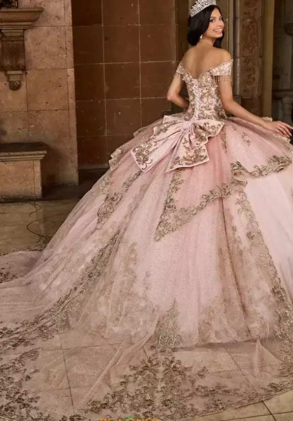 Want to add a dramatic effect to your quince dress the detachable glittered tulle skirt by Rachel Allan Quince is sure to do the job. QS3129 features fabulous applique to match the dress and dazzling beadwork that will sparkle bright. This train matches the quinceanera dress RQ3129. Train only. Dress is not included.