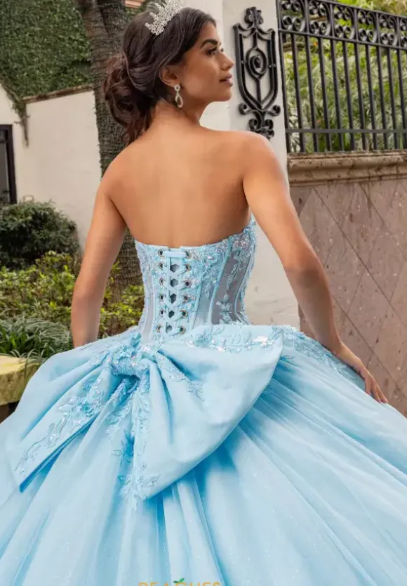 Beam perfectly all night in ball gown style RQ1168 by Rachel Allan Quinceanera. The straight across neckline is complimented with a fitted corset bodice fully embellished with lace applique and is matched along the middle of the full tulle skirt to have you making a statement. Detachable bow to offer more than one look for your upcoming photos. Sleeves/Necklace are sold seperately as QS1168.