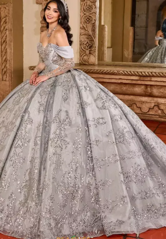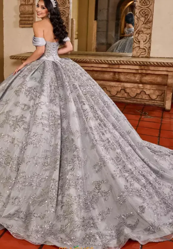 Be the show stopper as you make your grande entrance in the ravishing Quinceanera ball gown style RQ2194 by Rachel Allan Quince. The sweetheart neckline is paired wit lovely satin cap sleeves and illusion sleeves that are gorgeously adorned with lace. The bodice is intricately embellished with a combination of applique and meticulous beadwork that trails down the entire full skirt and makes its way down the fly away train.