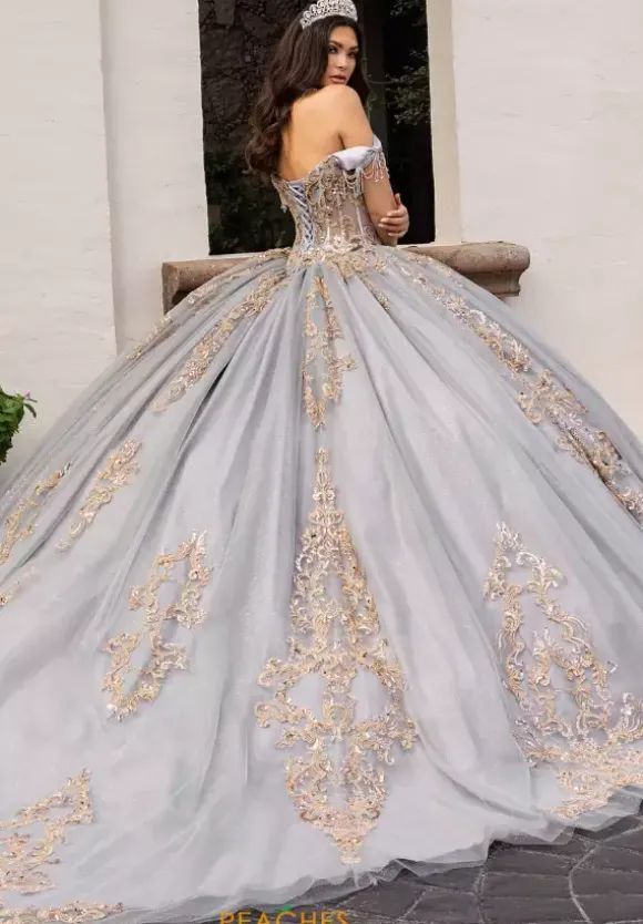 Wear this charming Rachel Allan Quince style RQ2230 for your special event. This amazing full ballgown showcases a modest scoop neckline paired with off the shoulder cap sleeves that feature draping fringe. Unique lace applique and dazzling beadwork covers this stylish number ensuring you stand out effortlessly.