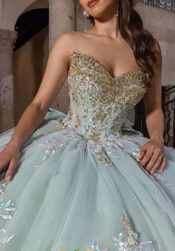 Illuminate as all the light hit you upon your entrance in remarkable ball gown style RQ2240 by Rachel Allan Quince. THe sweetheart cap sleeve combination alone the neckline adds daintiness. Showcasing the fully embellished illusion bodice with a matching full tulle skirt with meticulously placed sequin lace applique to have you sparkling all night long.