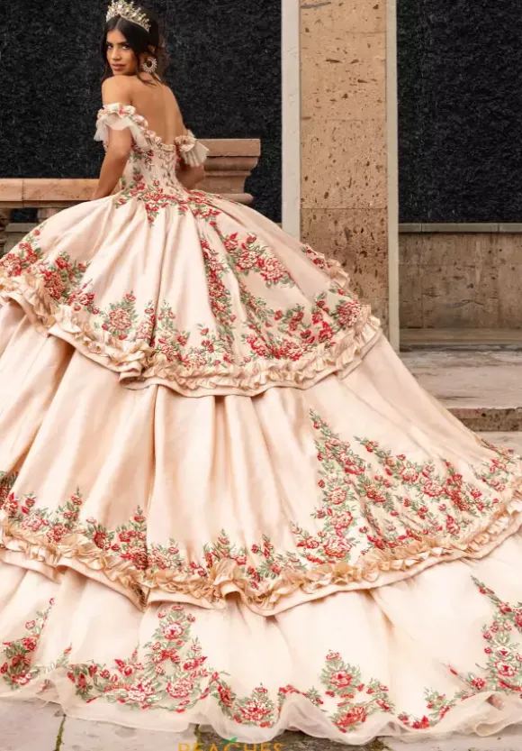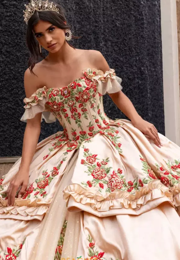 This Rachel Allan Quince dress is something you won’t forget and you will make memories that last a lifetime, Featuring a fashionable off the shoulder scoop neckline, Style RQ5015 comes with a detachable jacket that let’s you change your look for photos. With its beautiful floral applique and eye catching layers, this dress is truly stunning and unforgettable.