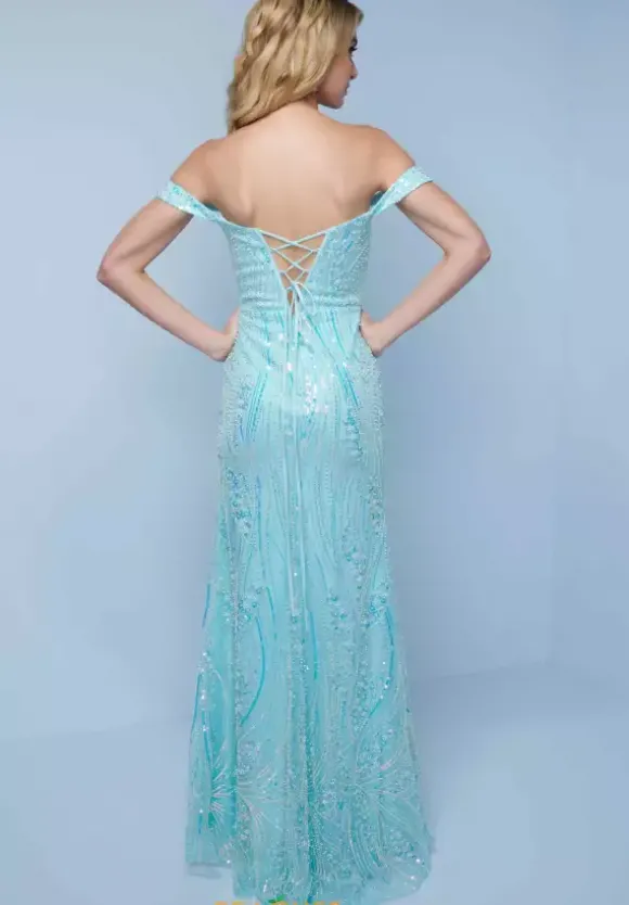 Look picture perfect at your next social occasion in this stunning long fitted dress K749 by Splash. Embellished completely with iridescent sequins, pearls and beads this shimmering gown showcases a structured corset bodice with a sweetheart neckline, cap sleeves, and lace up tie back. The long slim fitting skirt has a thigh high front side slit and back sweep train.