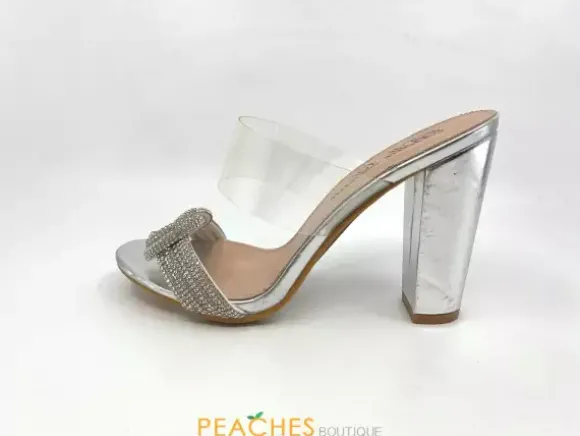Shimmer the night away in this ultra edgy Springland Saro heel, these dashing pumps are a must have for your next social occasion. This fabulous heels showcases an elaborate open toe strap adorn in radiant stones. A clear strap adds a sense of comfort and style, while the high thick blocked heel adds a dramatic touch.