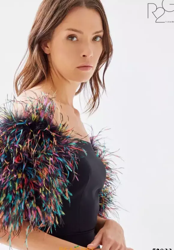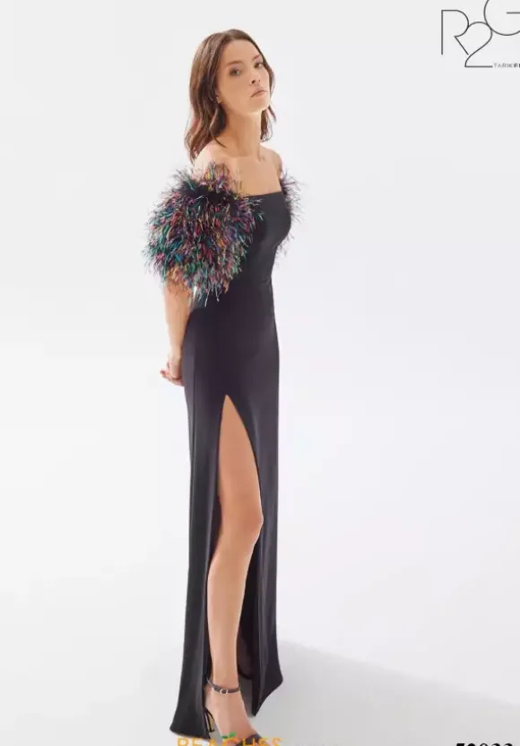 Look like you stepped off the red carpet in fascinating long dress 52033 by Tarik Ediz. This fitted dress is made from a crepe fabric that will flatter your figure while revealing an on trend thigh high slit that pairs elegantly with the contrasting off the shoulder feather puffed sleeves that add a dramatic touch.