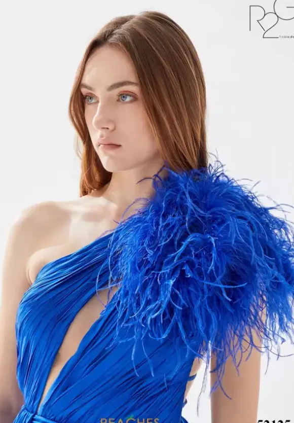 Show off your dramatic side in fierce taffeta dress 52125 by Tarik Ediz. This A line dress features a single shoulder asymmetrical neckline with a dramatic feather embellishment on the shoulder. A taffeta drape cascades from the small of your waist and adds drama to the thigh high slit and sweep train.