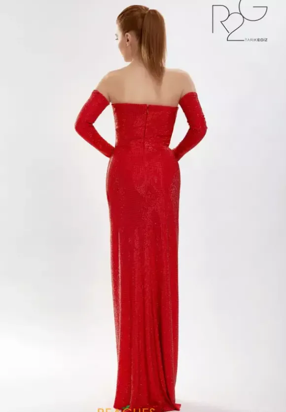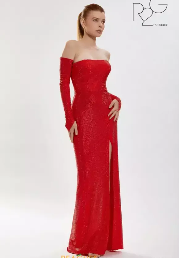 Have a vintage feel in Tarik Ediz style 52161, showcasing fully adorned beading that beautifully glistens at any angle for a fabulous effect. The fitted silhouette is dazzling when paired with a classy strapless, straight neckline making you look red carpet ready. A side slit looks glamorous and shows off the figure. Gloves included.