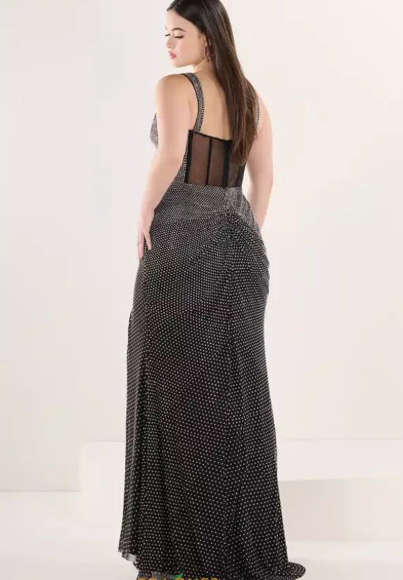 Tiffany style 16258 is the perfect blend of simple elegance and stunning detail. Featuring thick straps and a sexy deep V neckline, this dress offers a flattering, fitted bodice that hugs your figure in all the right places. The skirt flows gracefully and is finished with a striking thigh high slit. Beautiful hot stones embellish the entire gown, adding just the right amount of sparkle.
