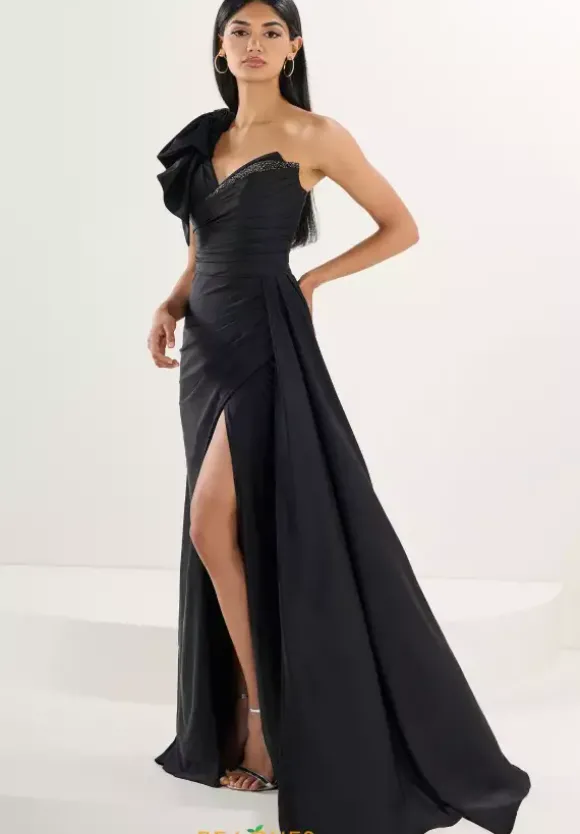 Sophisticated long style 16291 by Tiffany will have all heads turning. The asymmetrical neckline is paired with a ruffled detailing and showcases a v neckline detailed with meticulous beading for that classical look. Made entirely from a jersey material the fitted silhouette displays ruching and and eye catching overlay skirt to add the perfect amount of classical drama to future pictures.