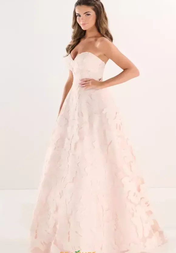 Awe the crowd wearing Tiffany long dress 16317 at your special event . This lovely a line dress showcases a darling sweetheart strapless neckline and fitted structure bodice. Completely decorated in lovely unique soft lace adds the perfect charming detail that will be sure to have all eyes fall on you.
