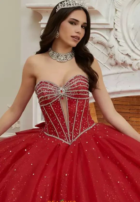 Feel like a real life princess when you choose this enchanting Vizcaya ball gown 60208 for your special day. This alluring ball gown showcases a stunning beaded corset bodice paired with detachable off the shoulder cap sleeves that will have all eyes on you. The full glitter tulle skirt and sweep train will leave a lasting impression. Complete your look with a matching stole that is included.