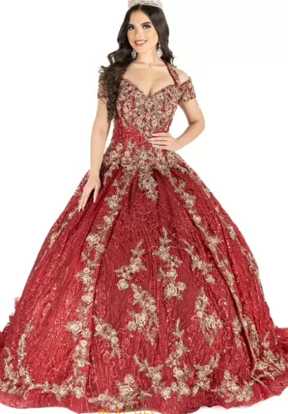 Elegance is what makes this Vizcaya ball gown a perfect choice for you. 89351 is a made from a gorgeous glitter tulle that is decked in metallic lace appliques. The halter style neckline showcases off the shoulder cap sleeves. Sparkling lights twinkle throughout the dress vamping up the glam factor. A Matching Stole is included.