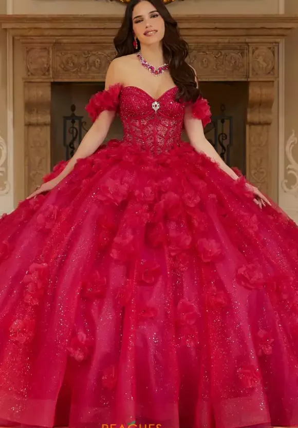 Feel like a real life princess and walk into your magical day wearing this enchanting Vizcaya dress 894877. This ball gown showcases a sweetheart neckline paired with detachable off the shoulder sleeves and a matching stole is included. The fully beaded corset bodice flowing into the full glitter tulle skirt will be sure to leave a lasting impression.